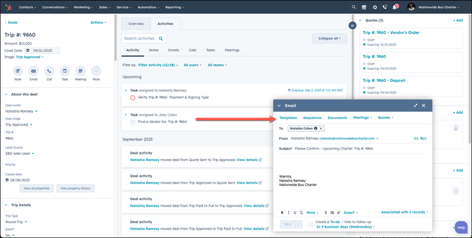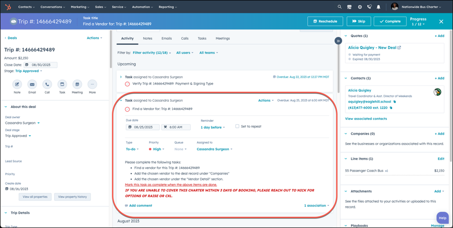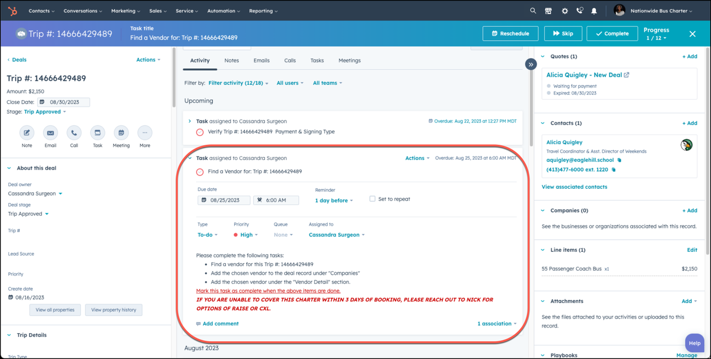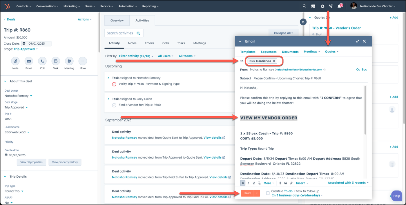 The deal stage must be Trip Approved or Trip Paid In Full in order for Vendor realated tasks and activities to begin to occur. It is the responsiblity of the sales person to update the deal stage as activites occur with your trip.