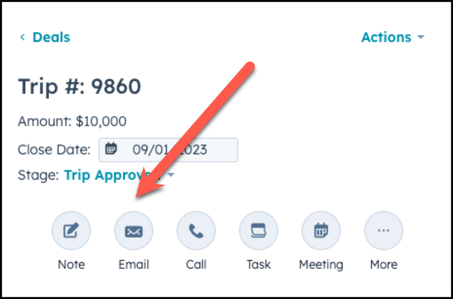 To properly send a vendor confirmation email must be in the deal of choice, and then choose Email.