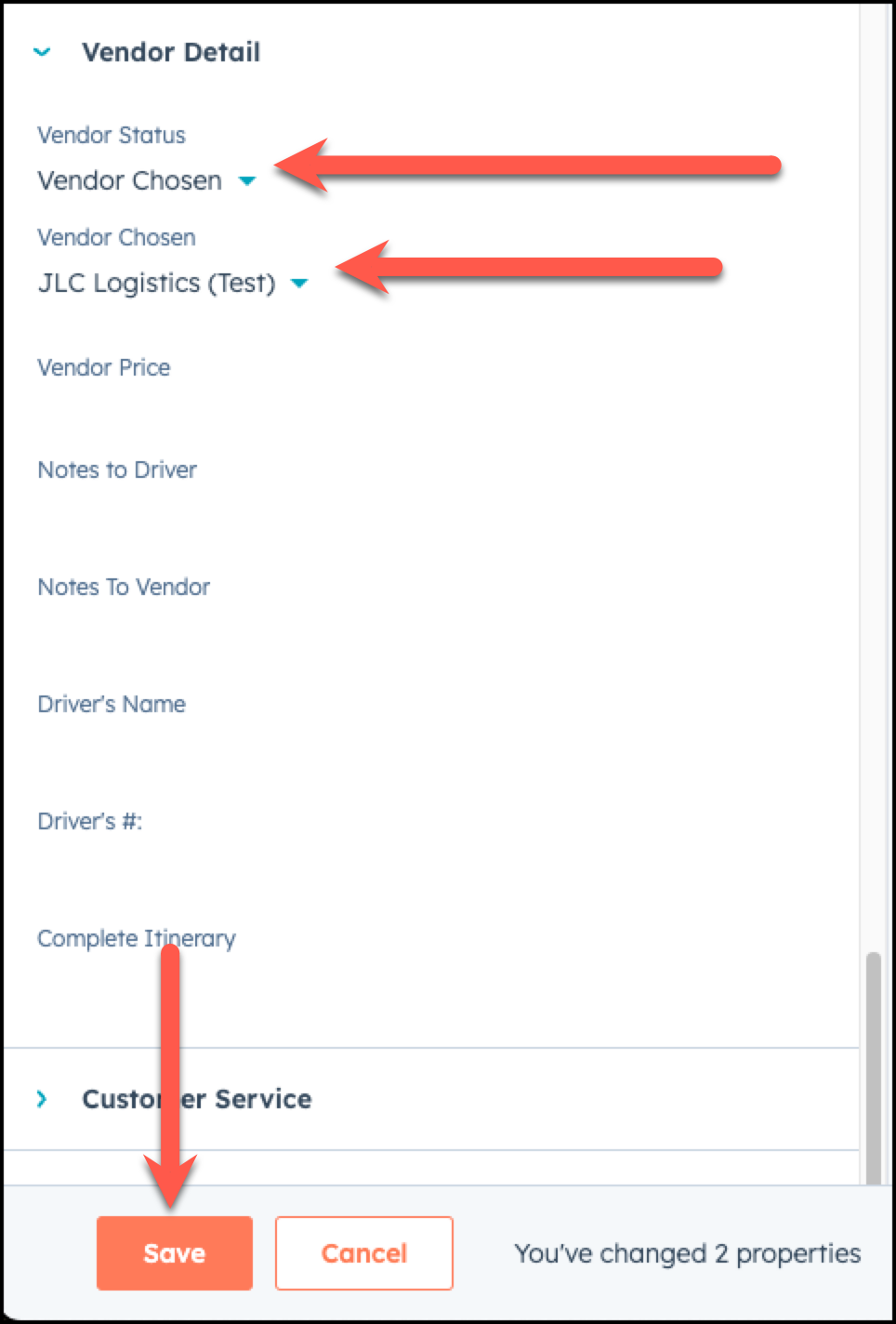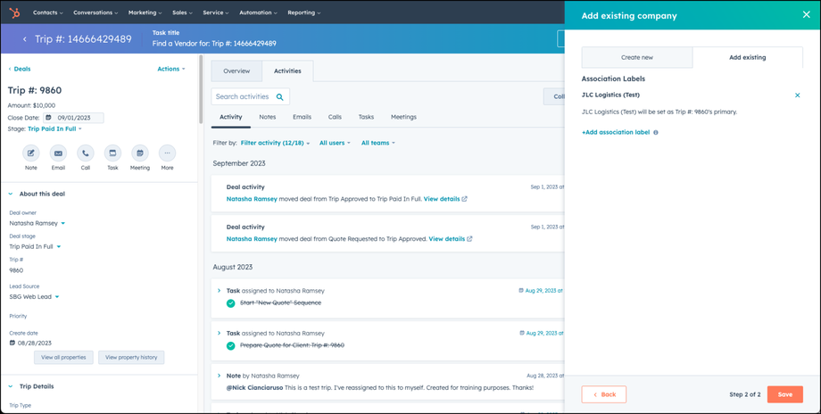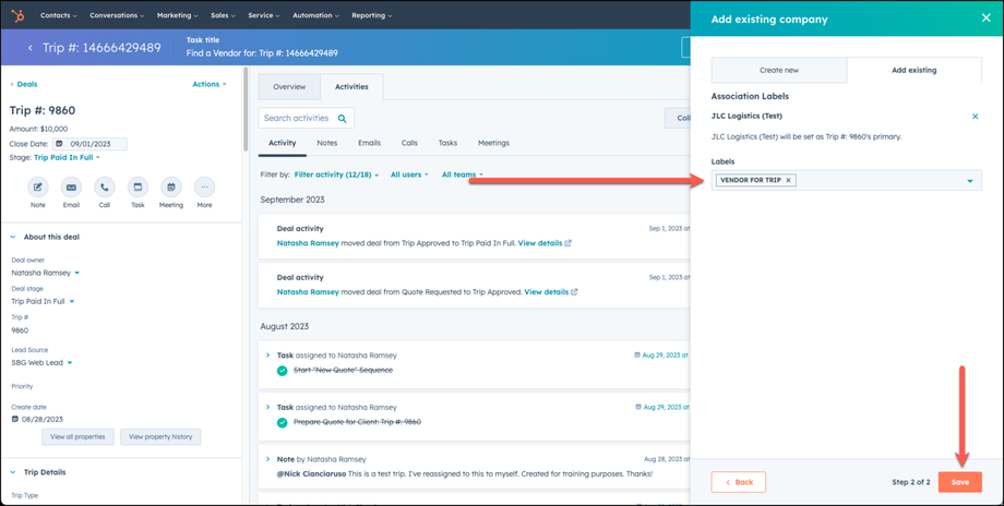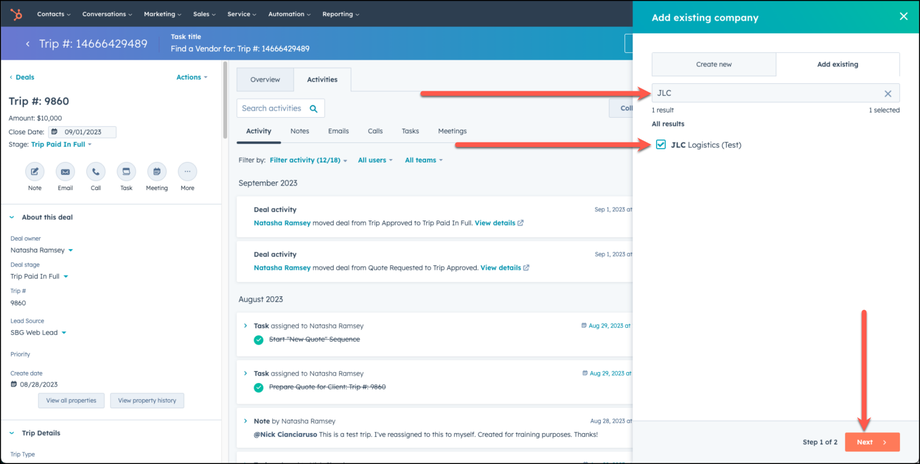 Add the chosen vendor in two places in HubSpot - under the vendor detail information in the deal, and as an associated company in the deal. Here's how you do that: