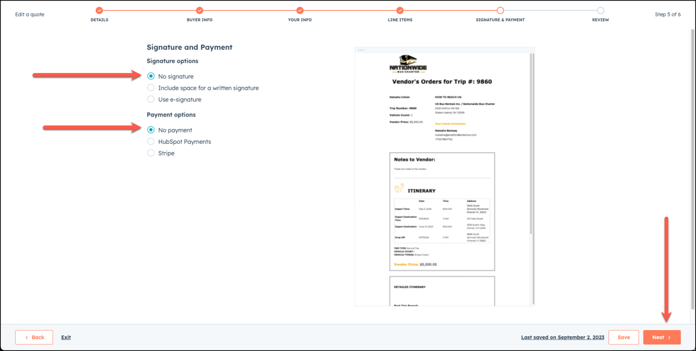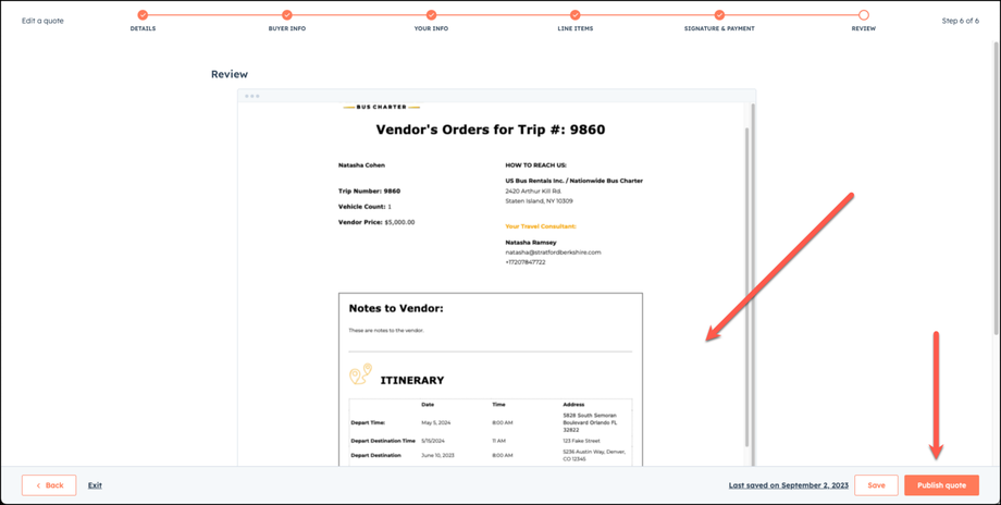 Review the Vendors Order in the preview screen and once it looks good to you, choose Publish Quote.
