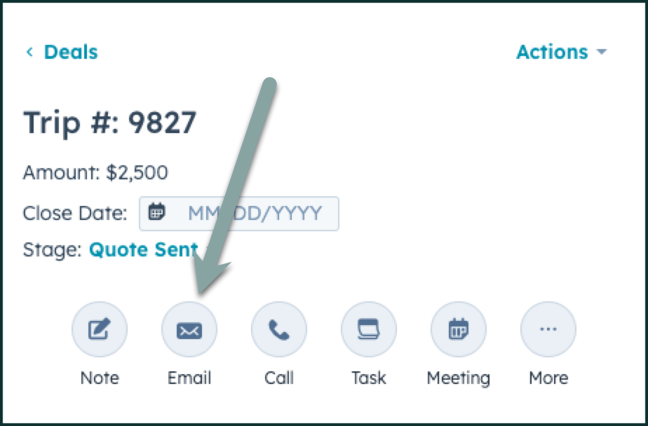In the deal, or under the contact, click on the Email button to write an email to your client.