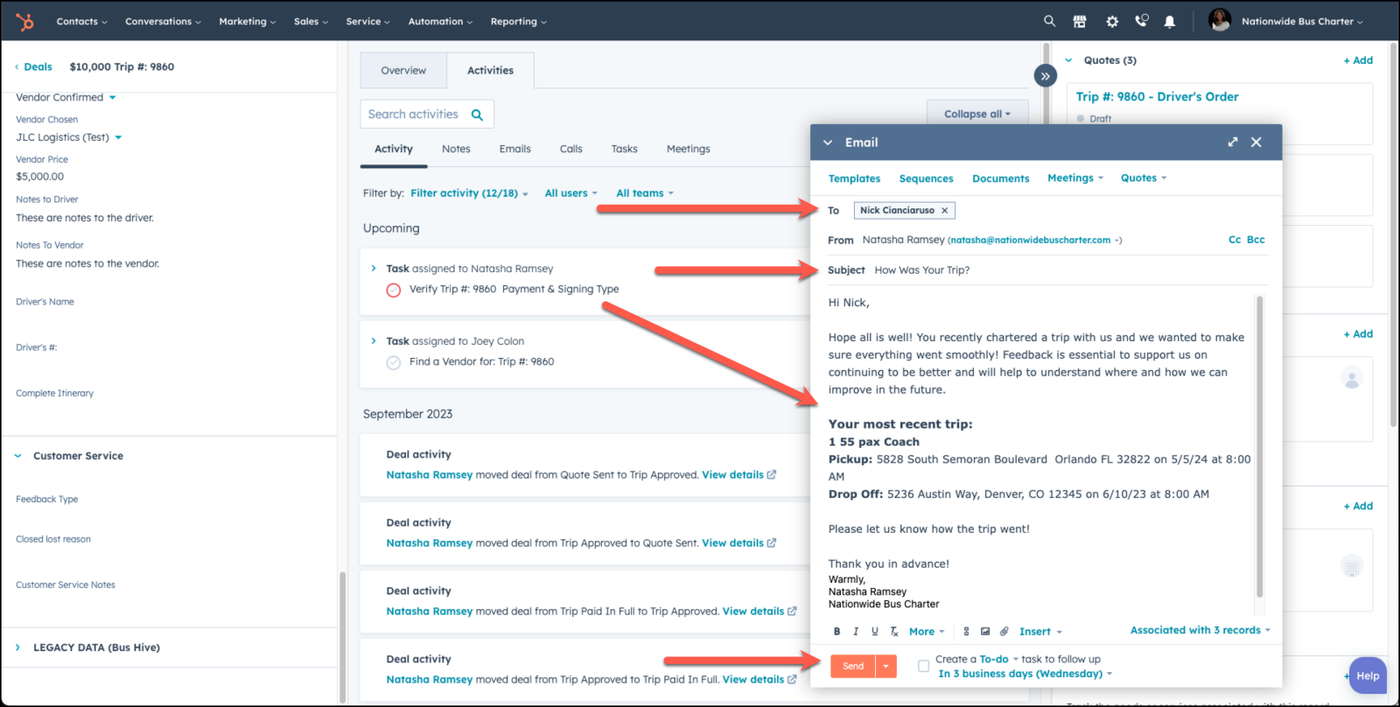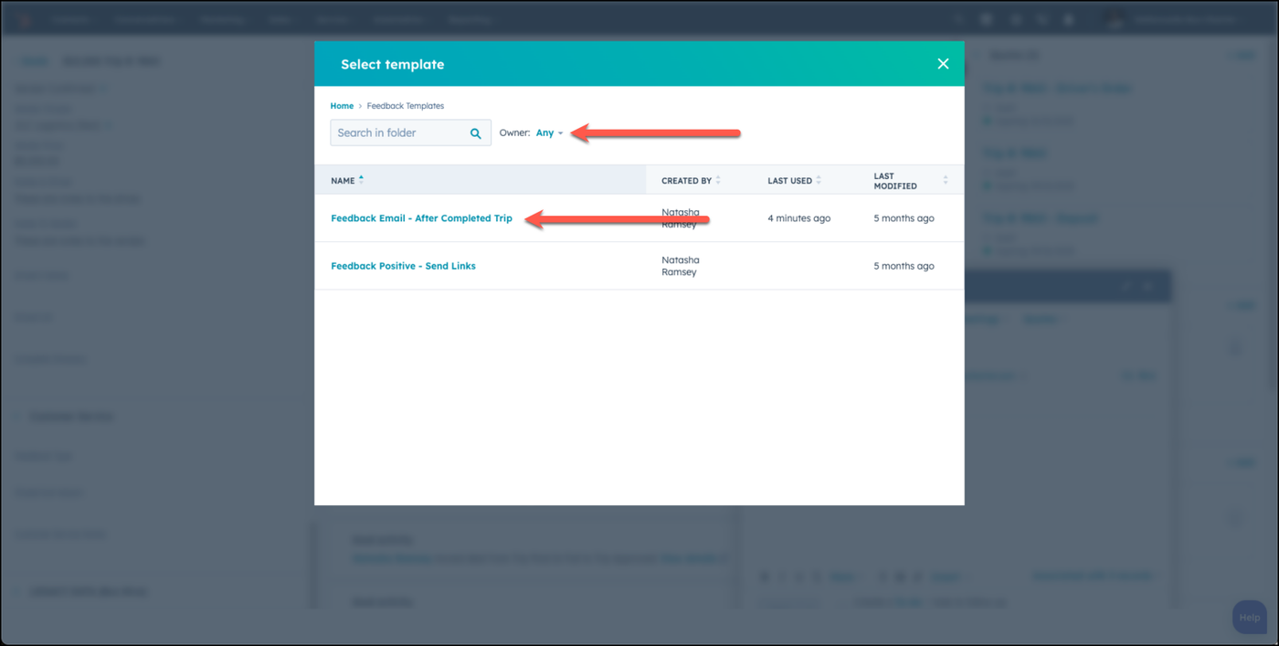 Once your pickup date for the trip has gone past 1 day, you will be assigned a task, as the owner of the deal, to send out the feedback email template to your client. DO NOT mark this task as complete, if you do not send out this email to the customer.