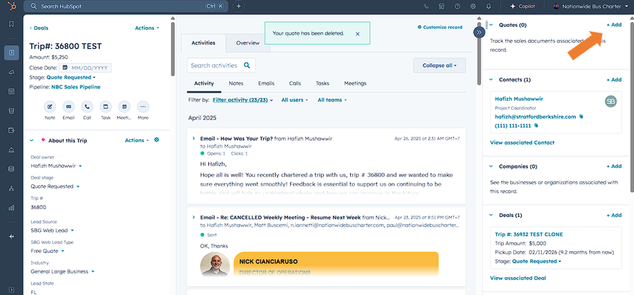 Please make sure all the details about your trip is completed under the deals page. Then click on Add Quote.
