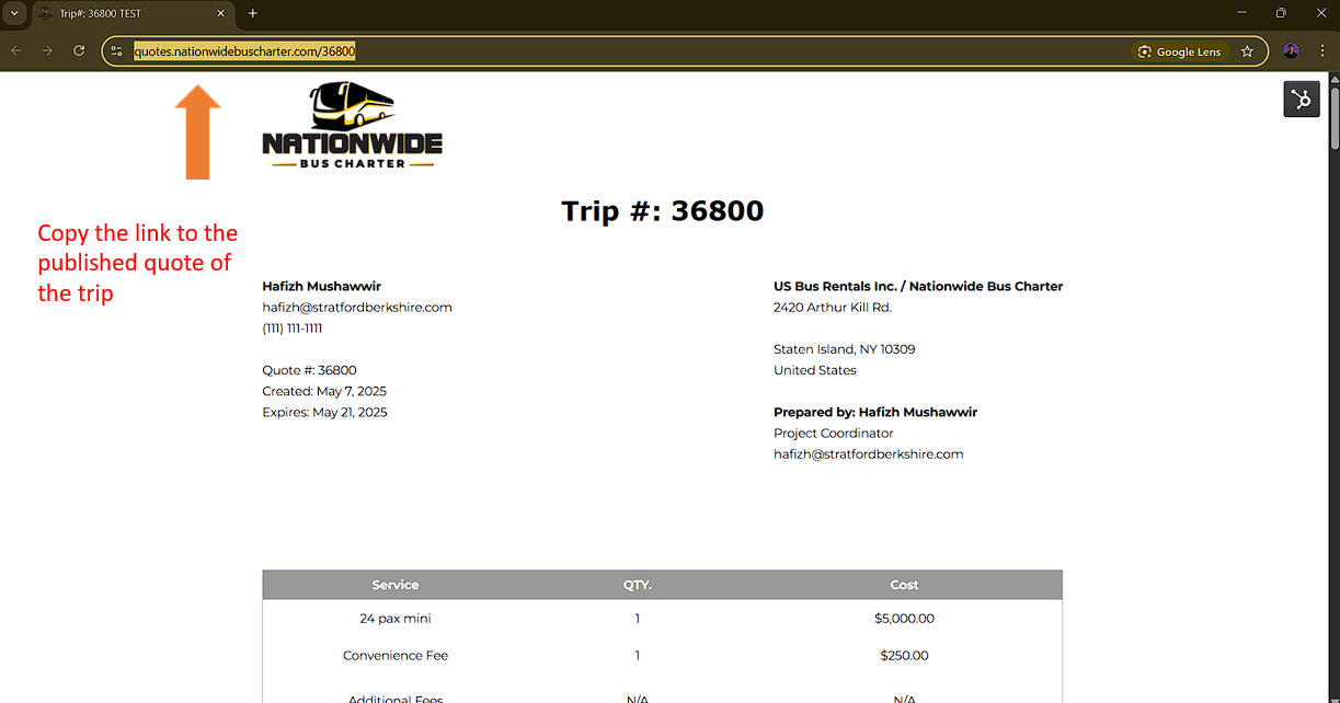 Before sending the template, you also need to attach the quote link to this email, you can do that by clicking on the quote that you've created and copy the URL.